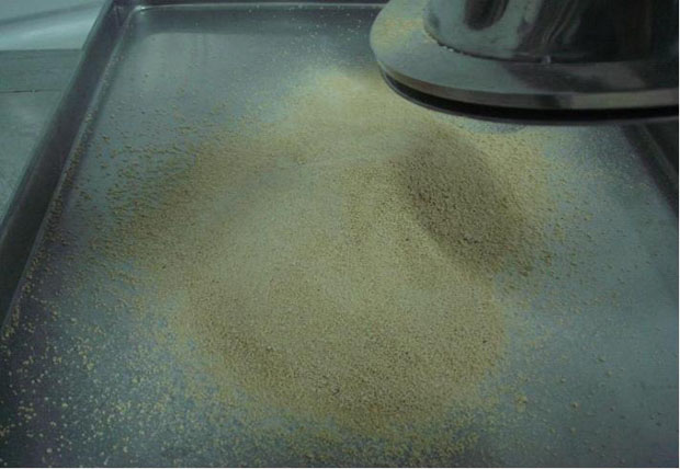 為什么要用快速整粒機(jī)整粒?因?yàn)槲锪辖?jīng)顆粒機(jī)制粒后,還需烘干,但烘干的顆粒會結(jié)成塊狀,因此需要再次整粒。有的藥廠為省錢,仍用顆粒機(jī)整粒,但整粒后多伴有粉末,且顆粒易破碎,顆粒質(zhì)量不好。這是什么原因呢?這是由顆粒機(jī)整粒原理決定的: 顆粒機(jī)工作時,七角滾筒邊緣旋轉(zhuǎn)擠壓物料,使物料顆粒從篩孔中穿出,有一部分則因擠壓而變成粉末。