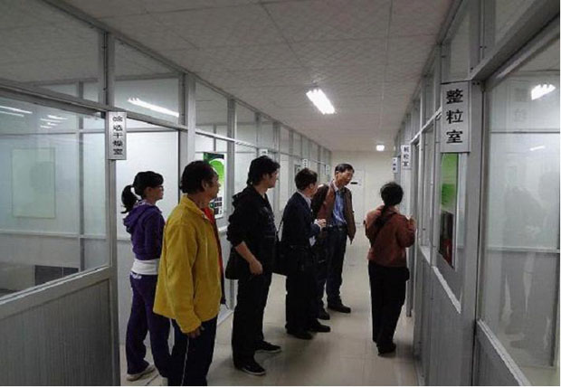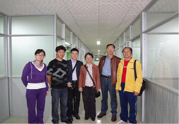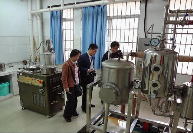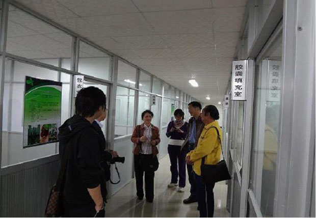 湖南中醫(yī)藥大學(xué)開設(shè)了生物工程等制藥專業(yè)。2009年,該專業(yè)技術(shù)負(fù)責(zé)人楊崧教授(男,帶眼鏡者),在考察了全國多家制藥機(jī)械廠家后,從我廠購進(jìn)了一批實驗室制藥設(shè)備,組建模擬藥廠。該院模擬藥廠因設(shè)計合理,管理規(guī)范,許多大專院校模擬藥廠、制藥實驗室負(fù)責(zé)人絡(luò)繹不絕到該院參觀取經(jīng)。圖為2011年9月我廠董事長、總經(jīng)理陪同湖南科技學(xué)院張敏主任(女,帶眼鏡者)一起參觀湖南中醫(yī)藥大學(xué)模擬藥廠實況。