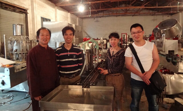 公司董事長何家寧先生的學(xué)生,湘雅附二醫(yī)院藥學(xué)教授,碩士研究生導(dǎo)師李健和教授,在我公司購買100ml液體自動(dòng)灌裝,旋蓋,鋁箔封口,貼標(biāo),打碼生產(chǎn)線。2014年5月底,李教授到我公司驗(yàn)收設(shè)備。