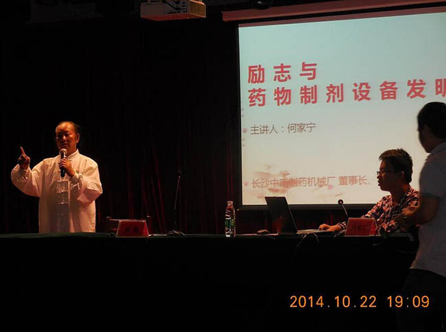 2014年10月22日,董事長(zhǎng)何家寧先生在湖南省食品藥品學(xué)院講學(xué)。題目是"勵(lì)志與藥物制劑設(shè)備發(fā)明"。學(xué)院甘院長(zhǎng),陳靜主任,中藥專業(yè)黃教授,胡文主老師,學(xué)生處張?zhí)庨L(zhǎng)等到場(chǎng),有多專業(yè)多年級(jí)學(xué)生參加。今年9月,學(xué)院向我廠購(gòu)置一批制藥機(jī)械,經(jīng)陳靜主任,胡文主老師試機(jī)驗(yàn)收合格。