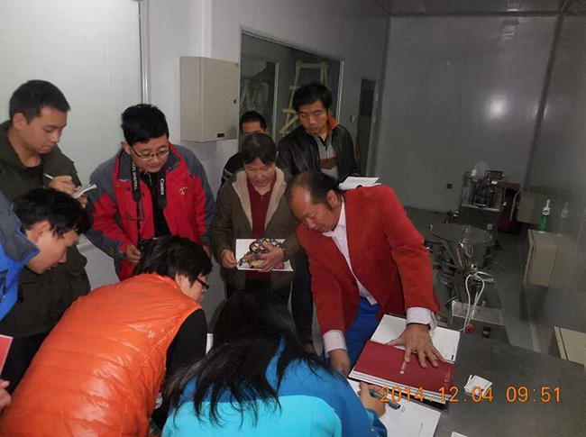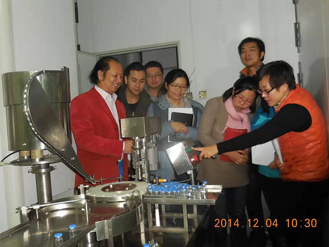 2014年12月4日,中國科學院國家納米研究中心,由甘雅玲研究員(女,納米科學家) 領隊,衛(wèi)生部,國家食品藥品監(jiān)督局領導,納米研究中心和相關(guān)學科研究所負責人參加,對我廠提供的西林瓶凍干生產(chǎn)線和小型片劑生產(chǎn)線進行實際操作驗收,非常滿意。這是我的專利,技術(shù)得到國家高級別科研單位認可。