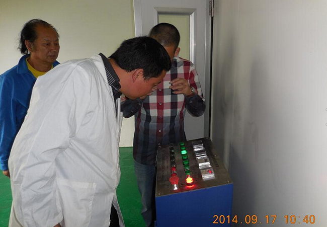 2014年9月17日,湖南省食品藥品學(xué)院購(gòu)買我廠ZNTD-50型提取濃縮液機(jī)組、QTB全自動(dòng)膠囊充填機(jī)及其他設(shè)備,圖為該院胡文主老師與董事長(zhǎng)何家寧先生在驗(yàn)收現(xiàn)場(chǎng)。