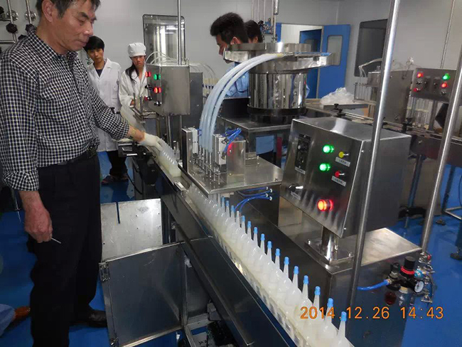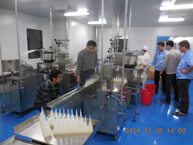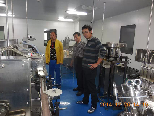 2014年12月26日,時(shí)逢毛澤東誕辰,海南皇隆制葯股份有限公司,現(xiàn)場試機(jī)驗(yàn)收我廠生產(chǎn)的2條甲硝噻灌裝壓蓋生產(chǎn)線.受到公司董事長陳益智先生,常務(wù)副總何晶先生,設(shè)備部陳風(fēng)崗先生熱情接待. 該生產(chǎn)線為直線式消泡灌裝壓蓋,為國內(nèi)研發(fā)制造. 祝海南皇隆制葯股份有限公司生意興隆!