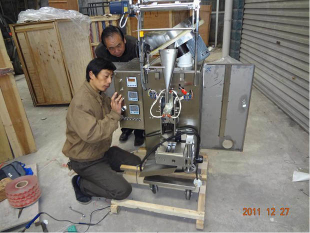 2011年12月份,漳州職業(yè)技術(shù)學院向我廠購進ZKB-P片劑包裝機,ZP-9旋轉(zhuǎn)式壓片機,DG系列液體灌裝機等設(shè)備一批,圖為我廠技工對ZKB-P片劑包裝機進行出廠調(diào)試。