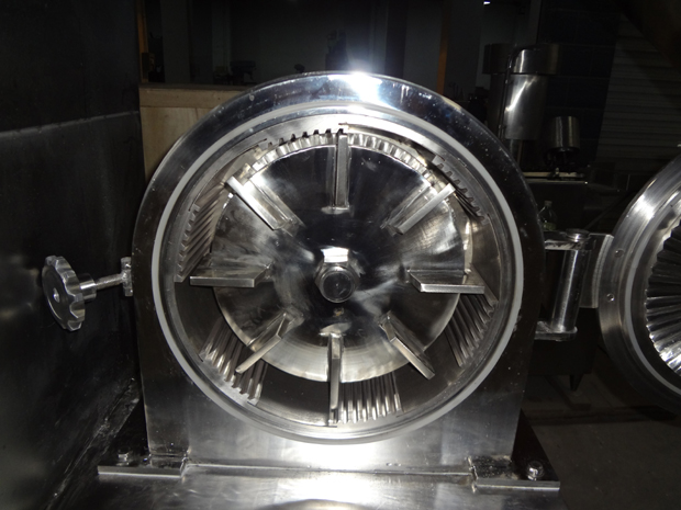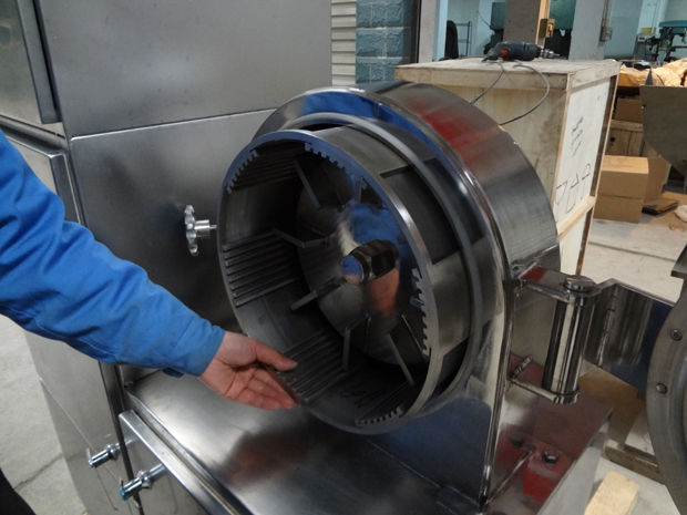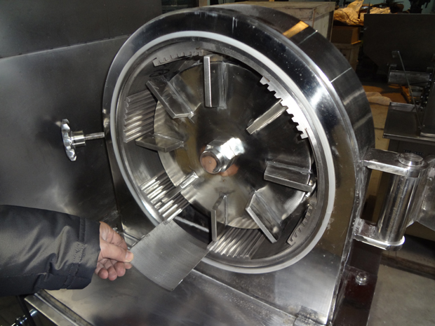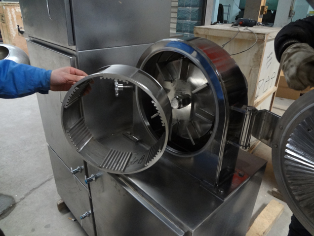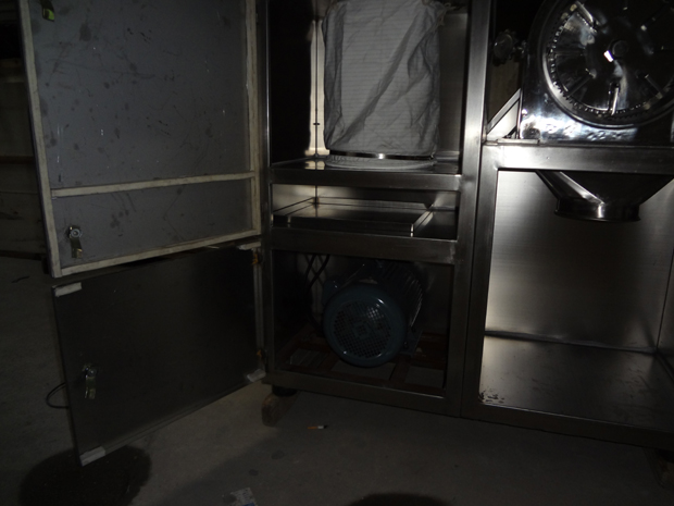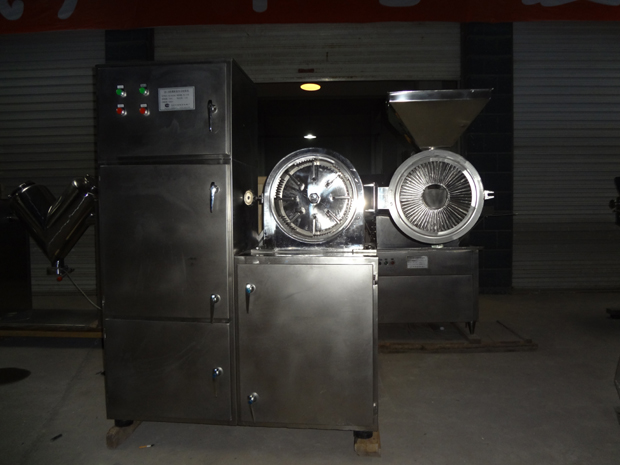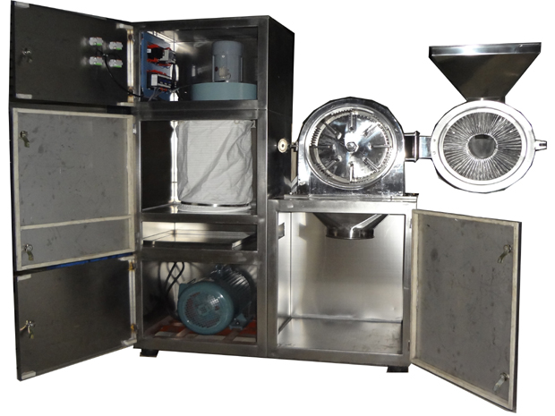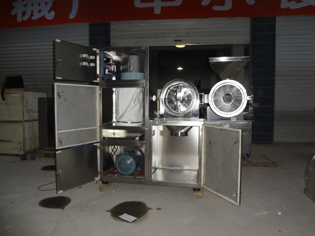 本機(jī)是在GF-30B基礎(chǔ)上改進(jìn)的強(qiáng)力型粉碎機(jī)組。主要改變有:電機(jī)功率從5.5kw變?yōu)?span style="font-family:Tahoma;color:#000000;font-size:16px;" lang="EN-US">7.5kw,粉碎產(chǎn)量更大;粉碎倉(cāng)增大;齒圈能自由抽出,便于清潔;雙層密封圈由密封條改為優(yōu)質(zhì)硅橡膠圈,密封效果更好,更耐用;電機(jī)啟動(dòng)時(shí)采用星三角接法,附有其他延時(shí)啟動(dòng)元件,開機(jī)平穩(wěn),解決了開機(jī)時(shí)沖擊響聲大的缺點(diǎn)。本機(jī)結(jié)構(gòu)采用渦輪式,工作時(shí)具有自冷作用,解決了通常粉碎機(jī)工作時(shí)的發(fā)熱難題,粉碎效率高,物料的粉碎細(xì)度可達(dá)60-120目,除能粉碎常用物料外,尤其適用于熱敏性物料的粉碎。主要用于化工、醫(yī)藥、染料、農(nóng)藥、食品砂糖、食鹽、植物纖維(中草藥、甘草、海參、大黃等)保溫材料、碳黑、活性炭、科研等行業(yè)。