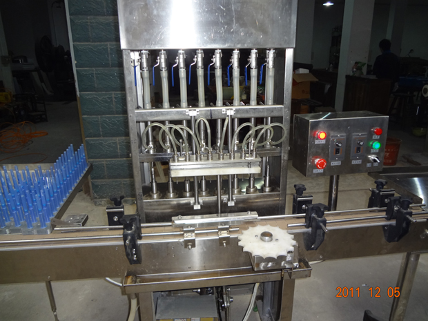 2009年,我廠董事長(zhǎng)何家寧先生發(fā)明的“GSG型膏劑栓劑灌裝機(jī)”榮獲國(guó)家創(chuàng)新基金支持(注:長(zhǎng)沙市坤一制藥機(jī)械有限公司是中南制藥機(jī)械廠下屬企業(yè),專門研制開發(fā)高新技術(shù)項(xiàng)目。法定代表人:何家寧)。這款機(jī)器已在國(guó)內(nèi)、國(guó)外使用五年,可以灌裝液體、膏劑、凝膠、栓劑等,可以是推注式(注射器)藥具或其他形狀藥具,只要口徑大于2.4mm即可灌裝,每次灌裝8瓶。由于采用了直線式灌裝,灌裝過程平穩(wěn),對(duì)位準(zhǔn)確,劑量精密,每分鐘灌裝60-100瓶。
