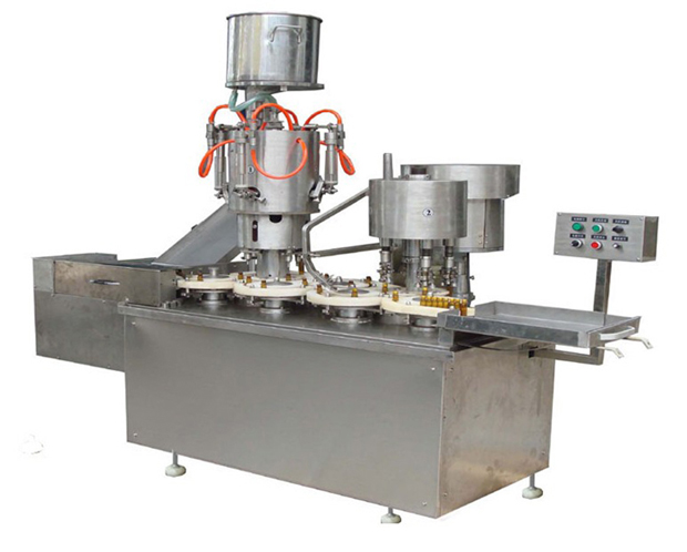 本機為DGZ4口服液灌軋機,專供灌裝口服液使用。可完成自動理瓶、灌裝、理蓋、軋蓋等工序。螺桿進瓶、4頭旋轉式灌裝、4頭旋轉式軋蓋,每個軋頭3把軋刀,灌裝軋蓋從容不迫,平穩(wěn)可靠。電器控制采用無級調速,具有無瓶不灌功能,操作簡單,自動化程度高,凡與藥物接觸的零件均采用不銹鋼或玻璃制品,無污染,符合GMP要求。是中小型藥廠、醫(yī)院、學校、食品飲料廠、生物化工廠等較為的中型口服液生產設備。