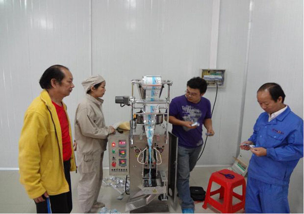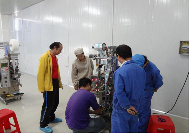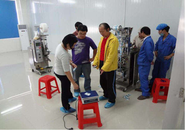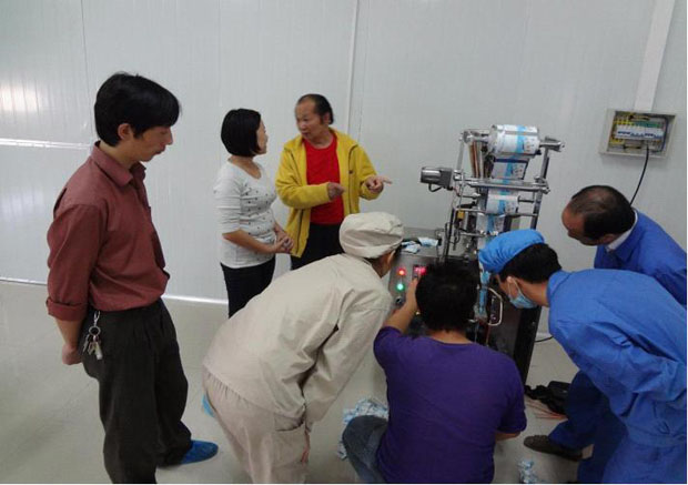 圖為千金養(yǎng)生坊健康品股份有限公司生產部黃玲芳主任率員工驗收ZKB-K顆粒包裝機實況。