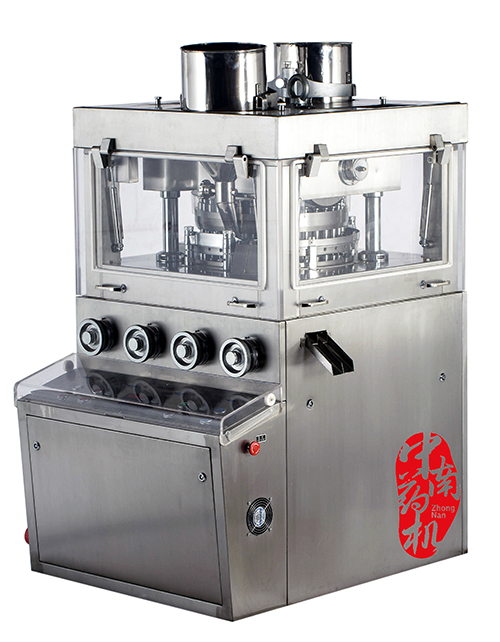 本機(jī)是一種雙壓式自動(dòng)旋轉(zhuǎn)、連續(xù)壓片的機(jī)器,將顆粒狀原料壓制成片劑,主要用于制藥工業(yè)的片劑生產(chǎn),同時(shí)適用于化工、食品、電子等工業(yè)部門。外圍罩殼為全封閉式,材料采用不銹鋼,能保持表面光澤與防止交叉污染,符合GMP要求。裝有透明玻璃的門窗,能清楚觀察壓片的狀態(tài),并且能全部打開(kāi),易于內(nèi)部清洗和保養(yǎng)。采用變頻調(diào)速裝置進(jìn)行電氣調(diào)速,操作方便,轉(zhuǎn)動(dòng)平穩(wěn),安全準(zhǔn)確。液壓系統(tǒng)設(shè)計(jì)合理,能保證液壓系統(tǒng)的穩(wěn)定。配有過(guò)載保護(hù)裝置,當(dāng)壓力過(guò)載時(shí),能自動(dòng)停機(jī)。沖?膳cZP19、ZP33、ZP35壓片機(jī)通用。